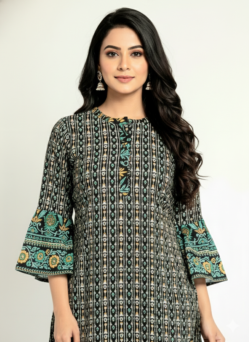 এই Ladies Two-Piece Co-ord Joypuri Set টি তৈরি করা হয়েছে উন্নত মানের China Lilen Cotton Fabric দিয়ে,
