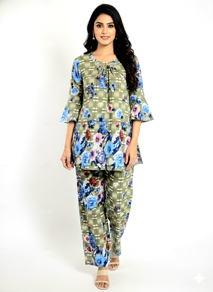 Premium Ladies Two-Piece Co-ord Joypuri Set made with high-quality China Viscose Fabric.